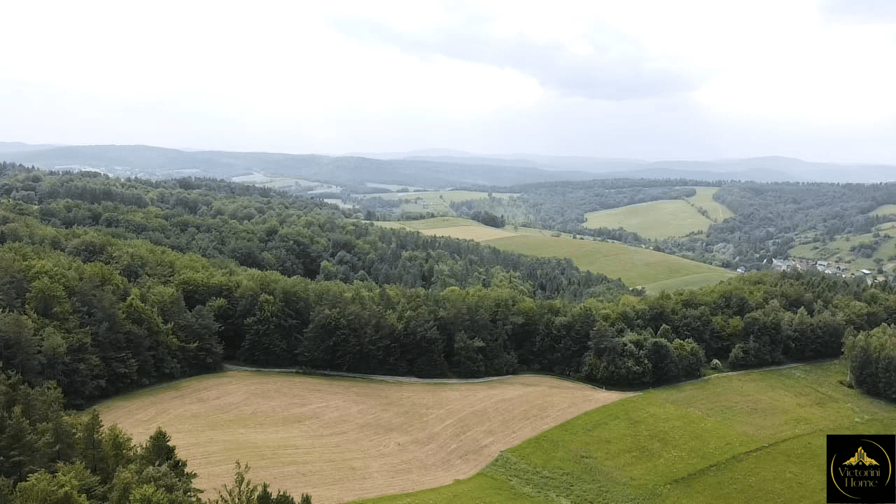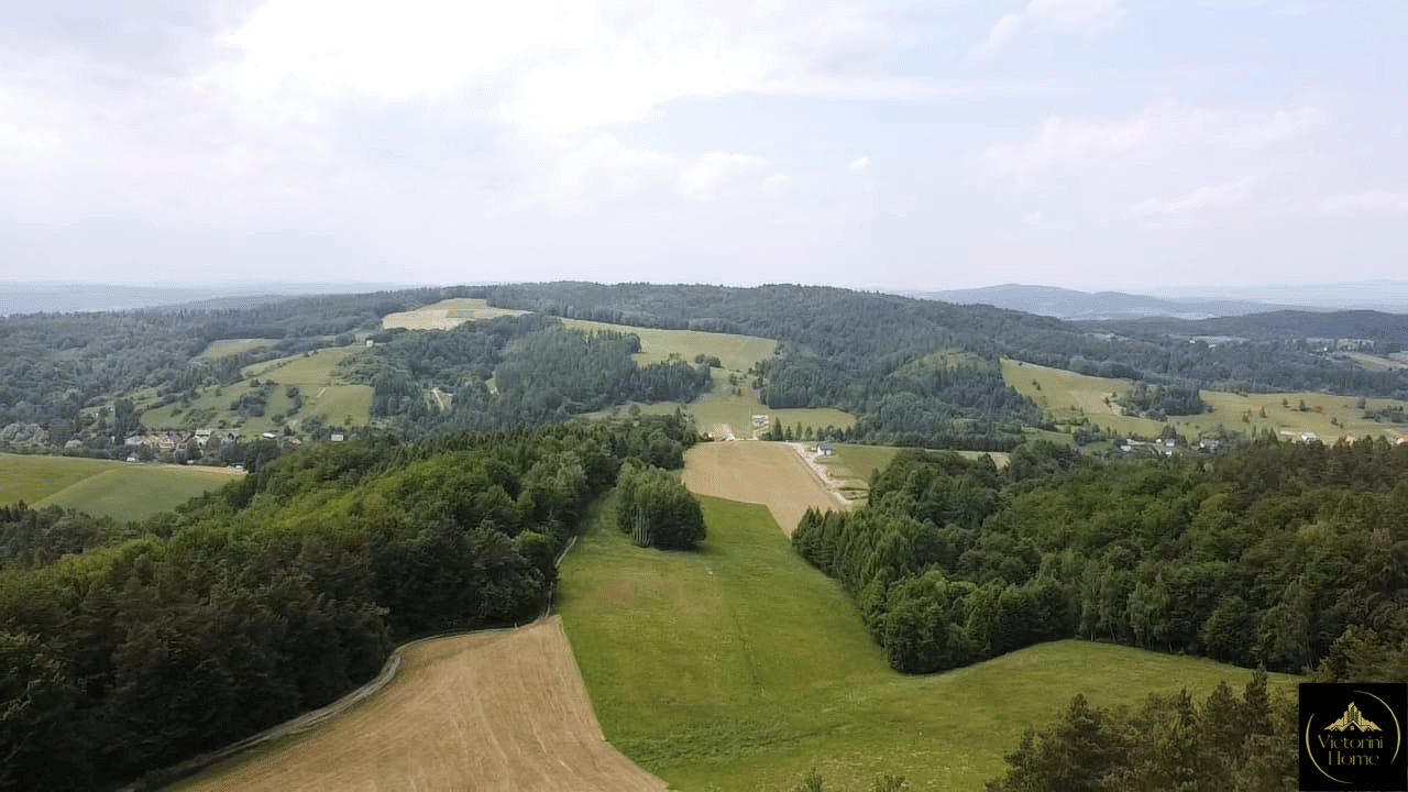 Działki położone są na urokliwym wzniesieniu, z którego roztacza się piękny, niezakłócony widok na okoliczne lasy i pagórki. Teren o nieregularnym kształcie, częściowo otoczony lasem, gwarantuje maksymalną prywatność i spokój – idealne miejsce na wypoczynek z dala od miejskiego zgiełku.